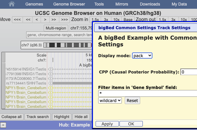 https://genome.ucsc.edu/cgi-bin/hgTracks?db=hg38&position=chr7:155799529-155812871&hubUrl=https://genome.ucsc.edu/goldenPath/help/examples/hubExamples/hubBasicSettings/hub.txt